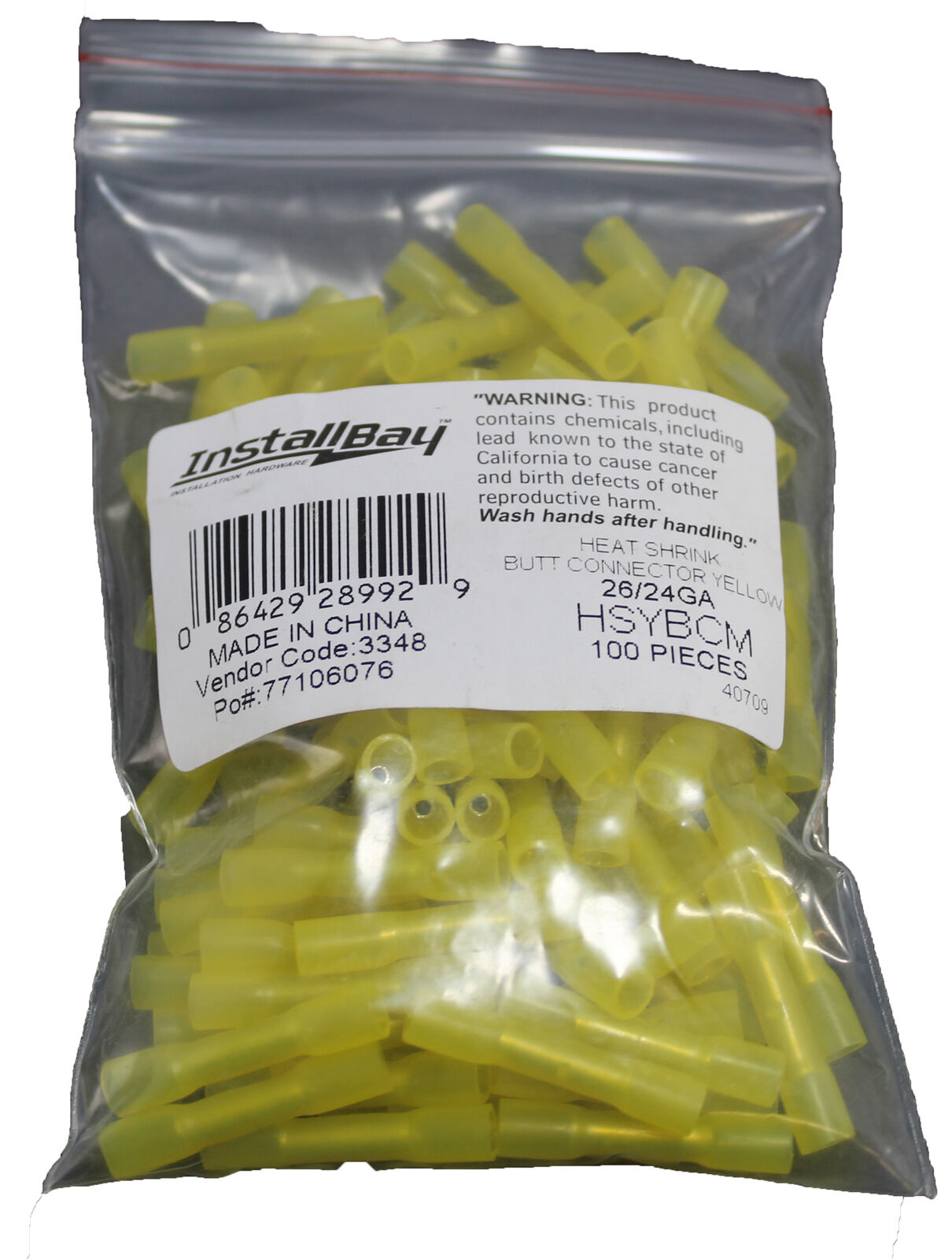 - (1) 100 Pack Heat Shrink Yellow Butt Connectors 24/26GA